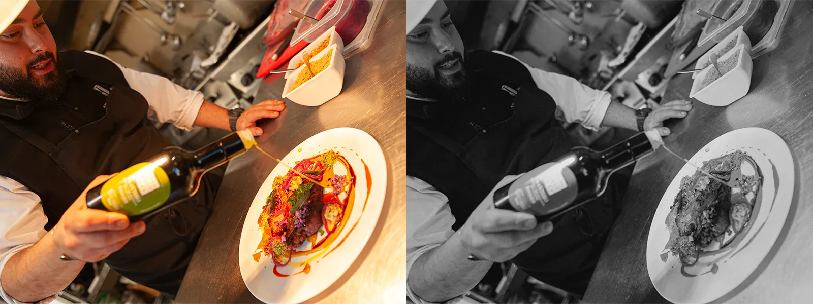 Il bianco e nero viene scelto quando si desidera rallentare la lettura dell’immagine e attivare un livello di percezione più profondo. Privato del colore, l’osservatore è portato a soffermarsi su dettagli che altrimenti passerebbero inosservati: uno sguardo, una texture, una tensione luminosa.