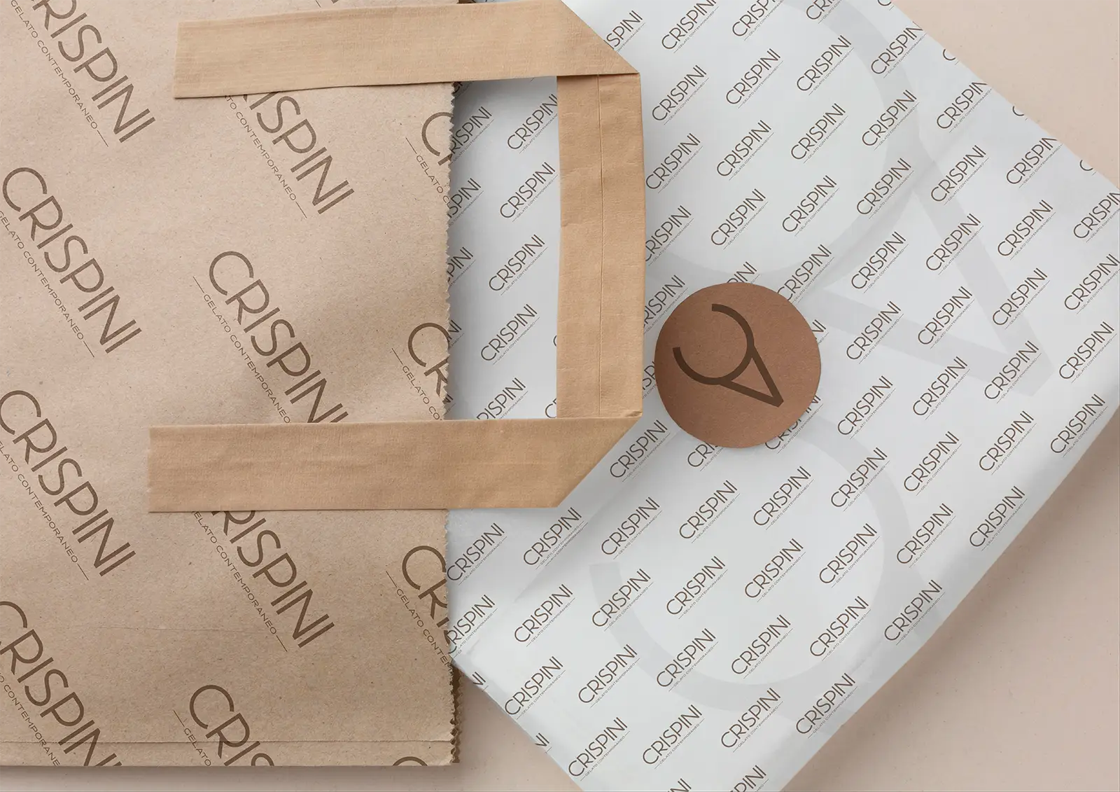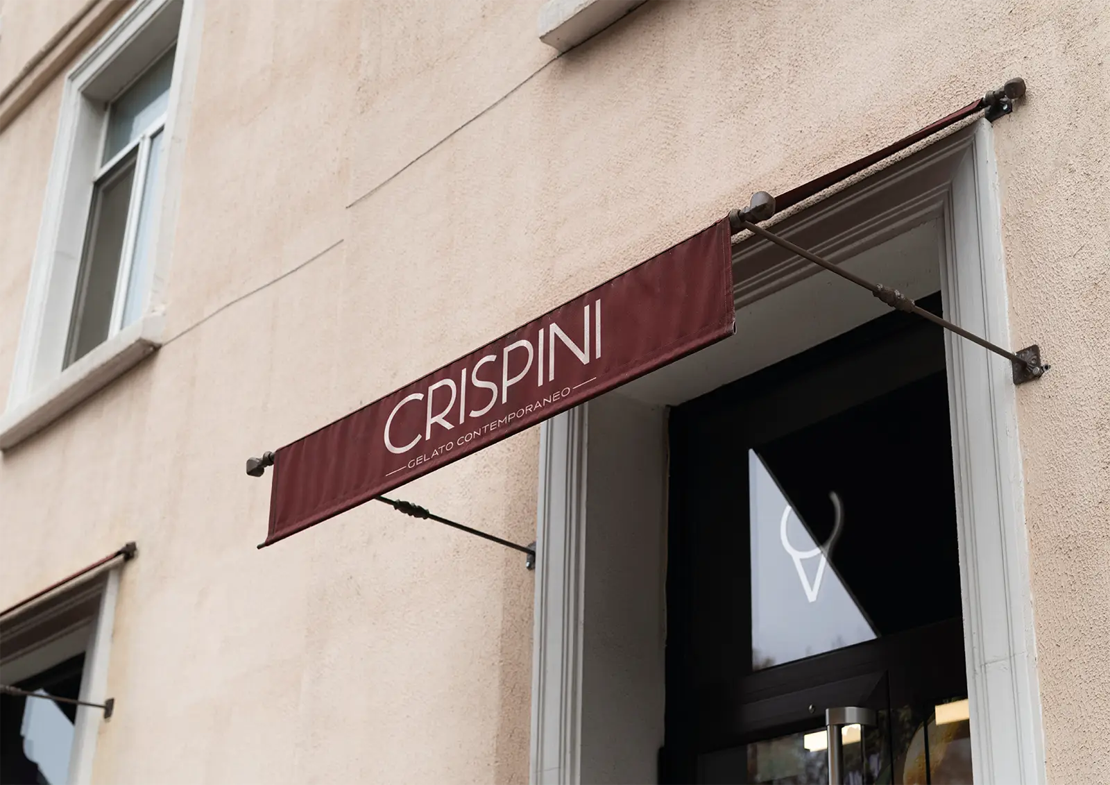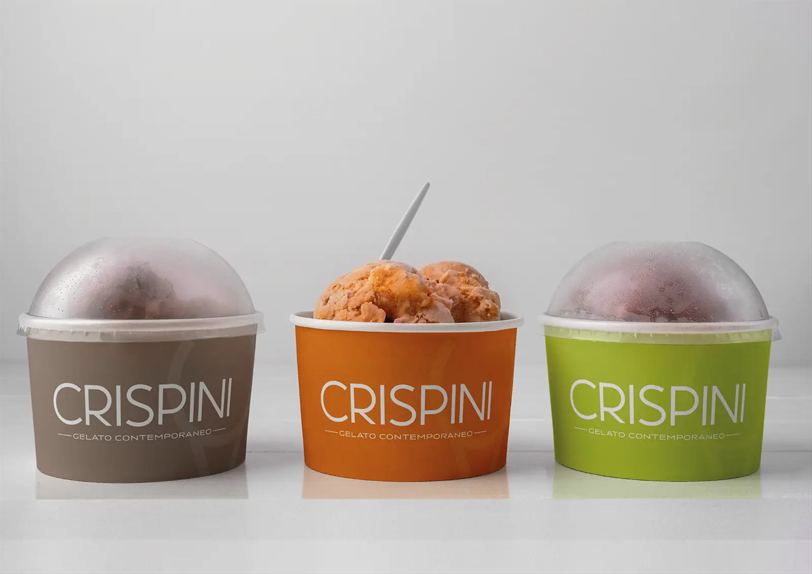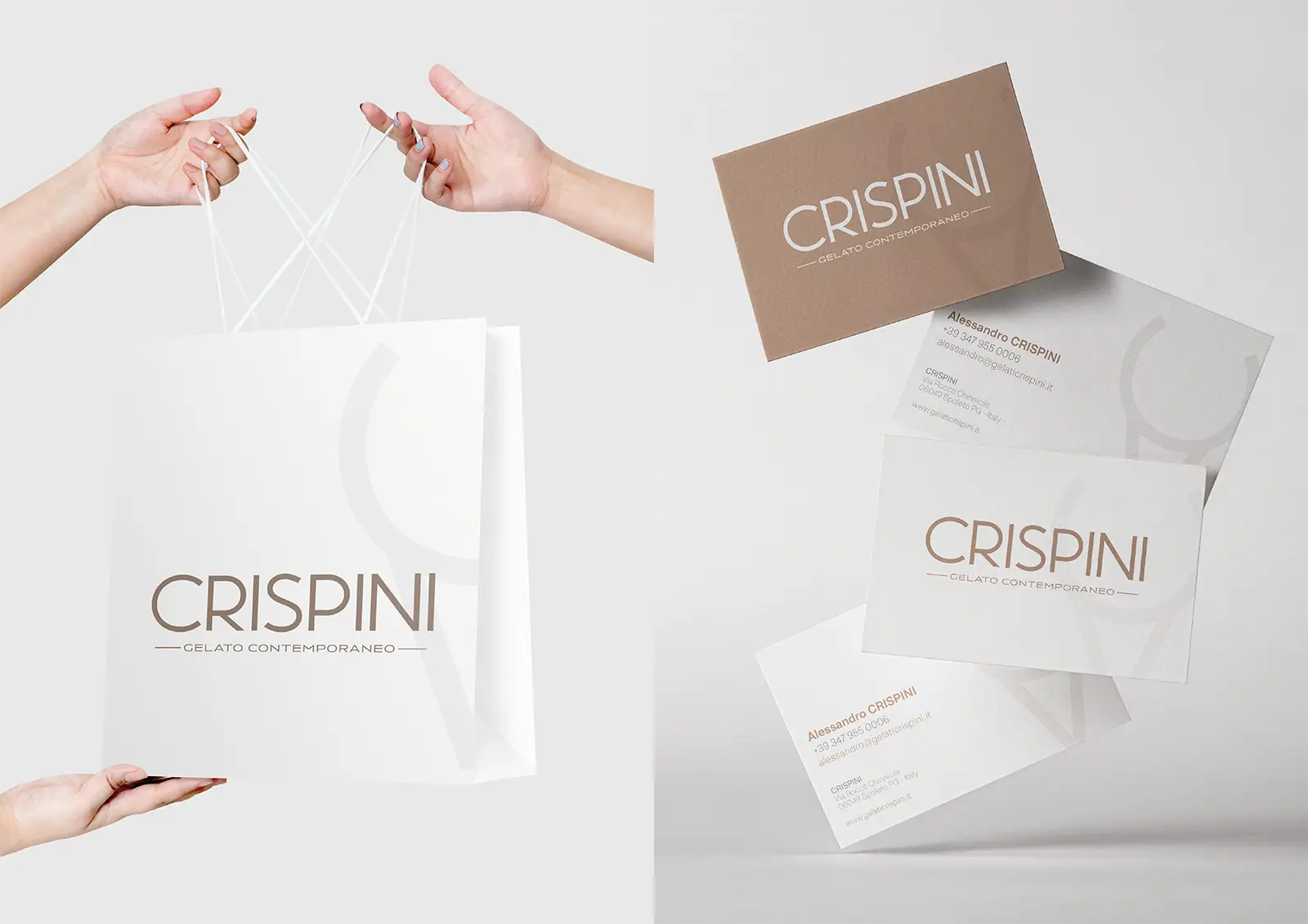 Il marchio “CRISPINI”, con payoff “GELATO CONTEMPORANEO”, è stato progettato con un approccio che privilegia la chiarezza, la coerenza semantica e la versatilità d’uso.